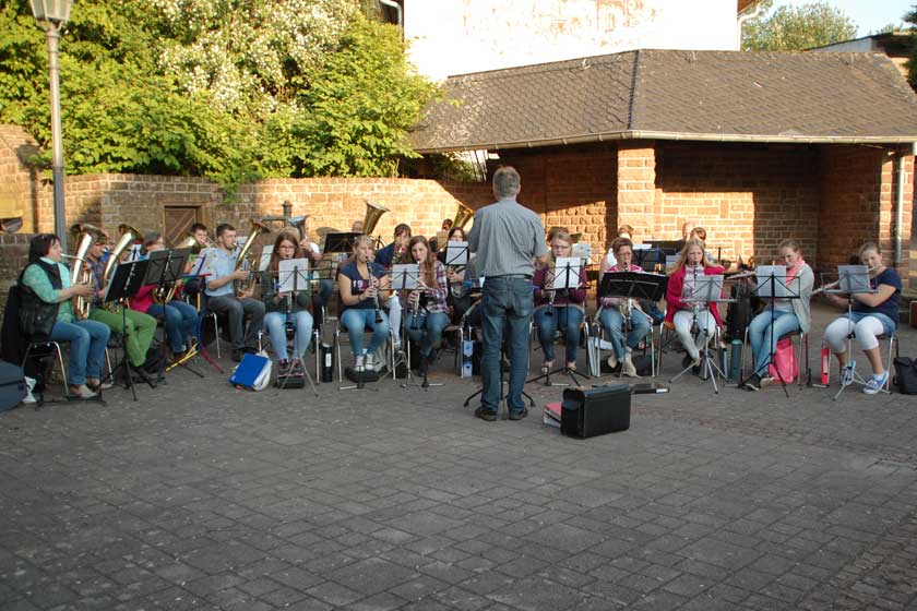 Öffentliche Proben, wie etwa auf dem Dorfplatz, zeigen die Verbundenheit des Vereins mit der Gemeinde.