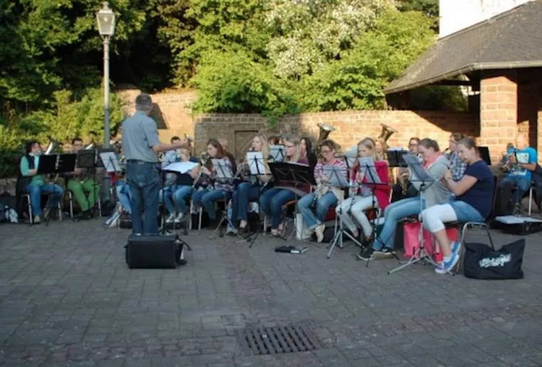 Öffentliche Proben, wie etwa auf dem Dorfplatz, zeigen die Verbundenheit des Vereins mit der Gemeinde.